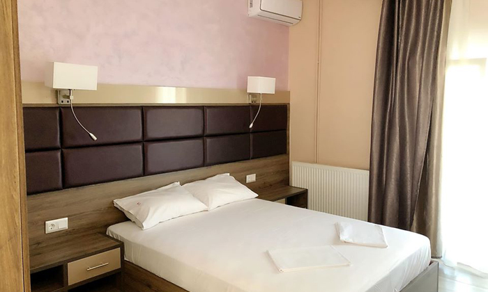 Villa consists of total 8 studios for accommodation of 2-4 persons. Each studio has 2-4 bedded rooms with kitchen, bathroom, balcony, TV, air conditioning. Completely renovated for season 2020 villa is situated in the New Sarti area, 10m from supermarket and 30m from sandy beach with sunbeds, umbrellas and beach bars.